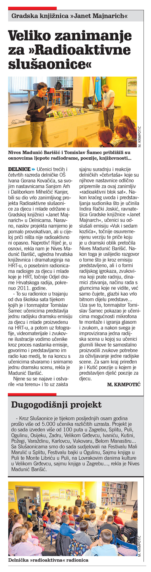 Gradska knjižnica "Janet Majnarich": Veliko zanimanje za "Radioaktivne slušaonice", članak, novi list