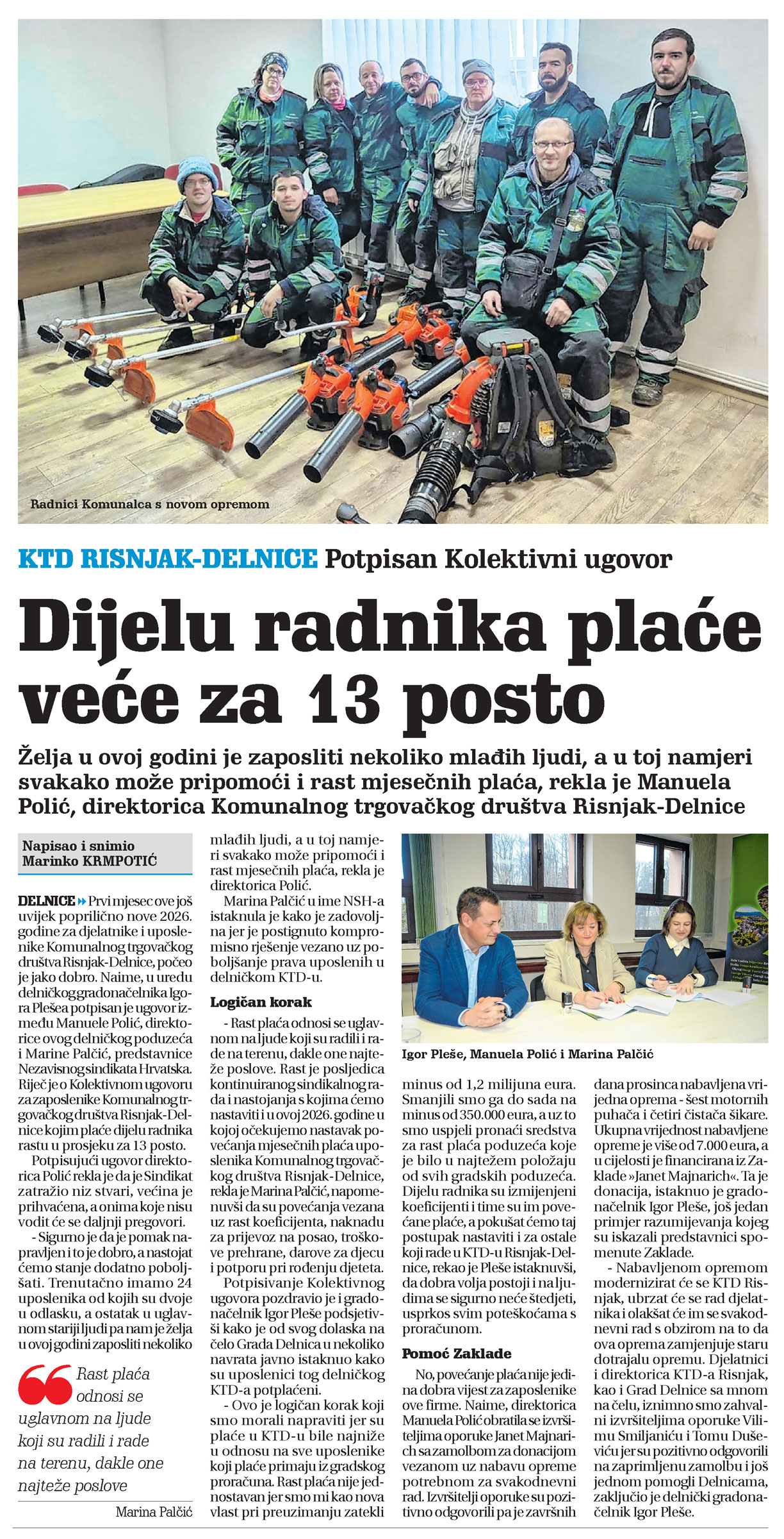 KTD Risnjak-Delnice: Potpisan Kolektivni ugovor, članka, novi list