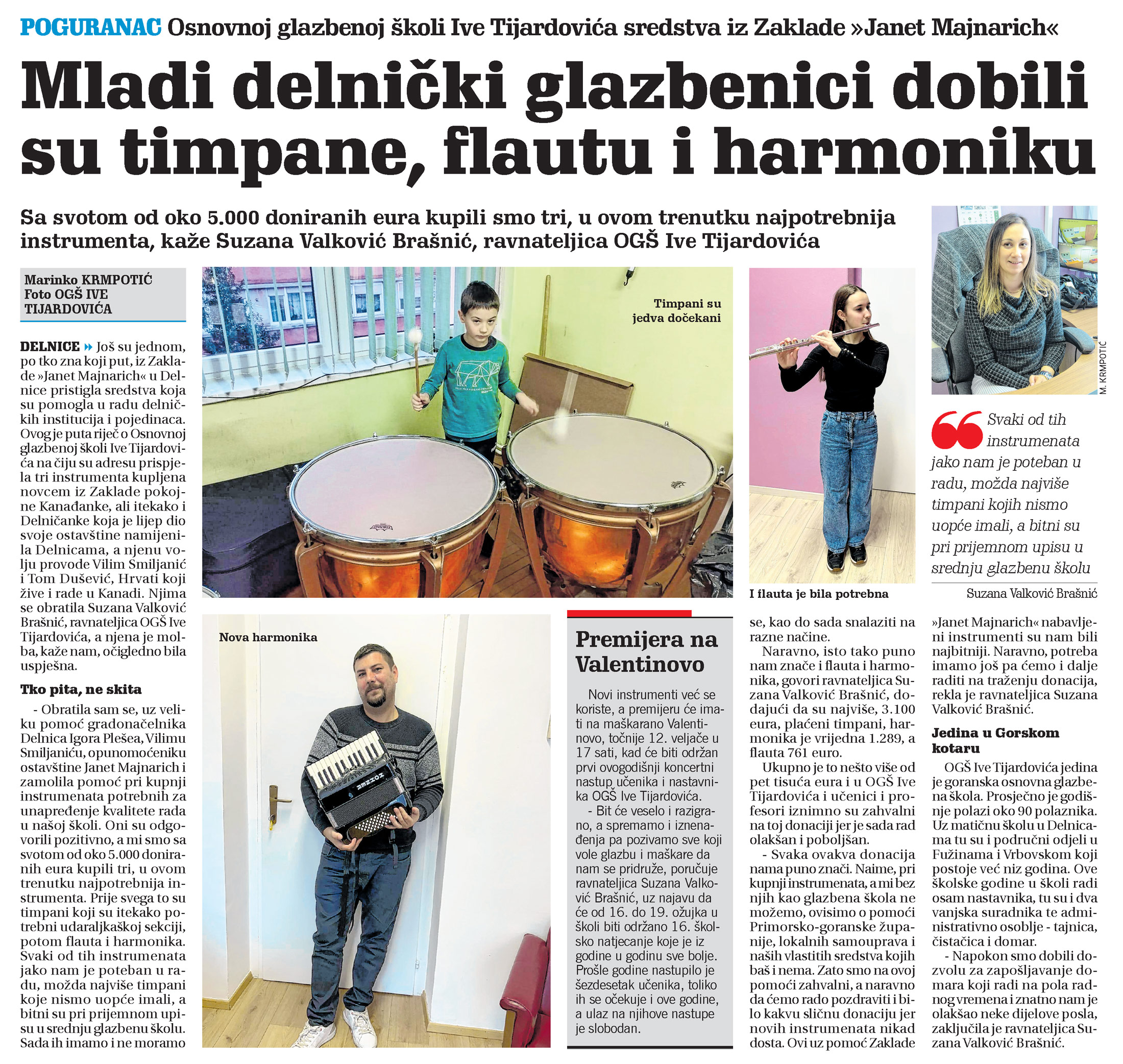 Mladi delnički glazbenici dobili su timpane, flautu i harmoniku, članak, novi list