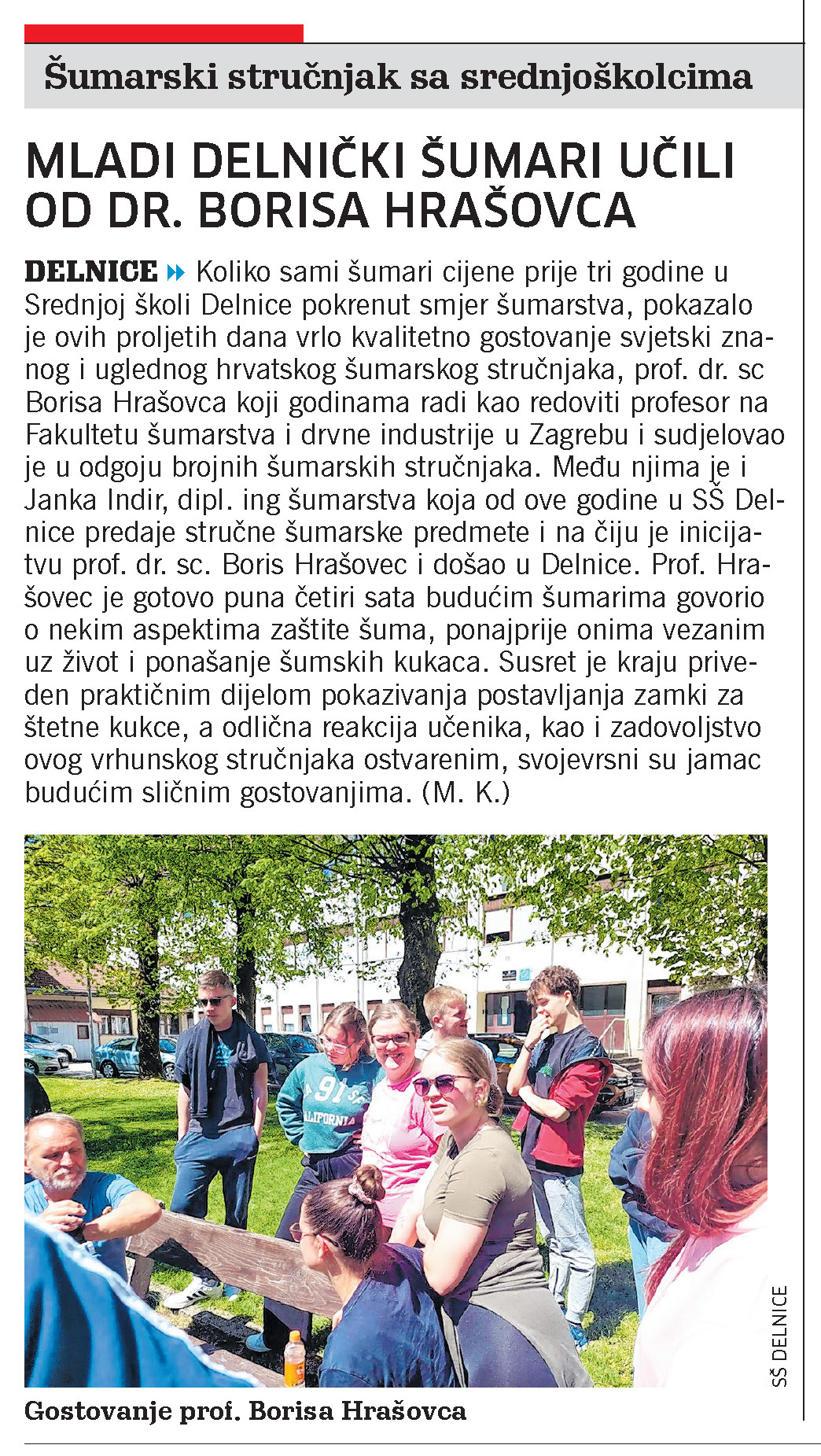Mladi delnički šumari učili od dr. Borisa Hrašovca, članak, novi list