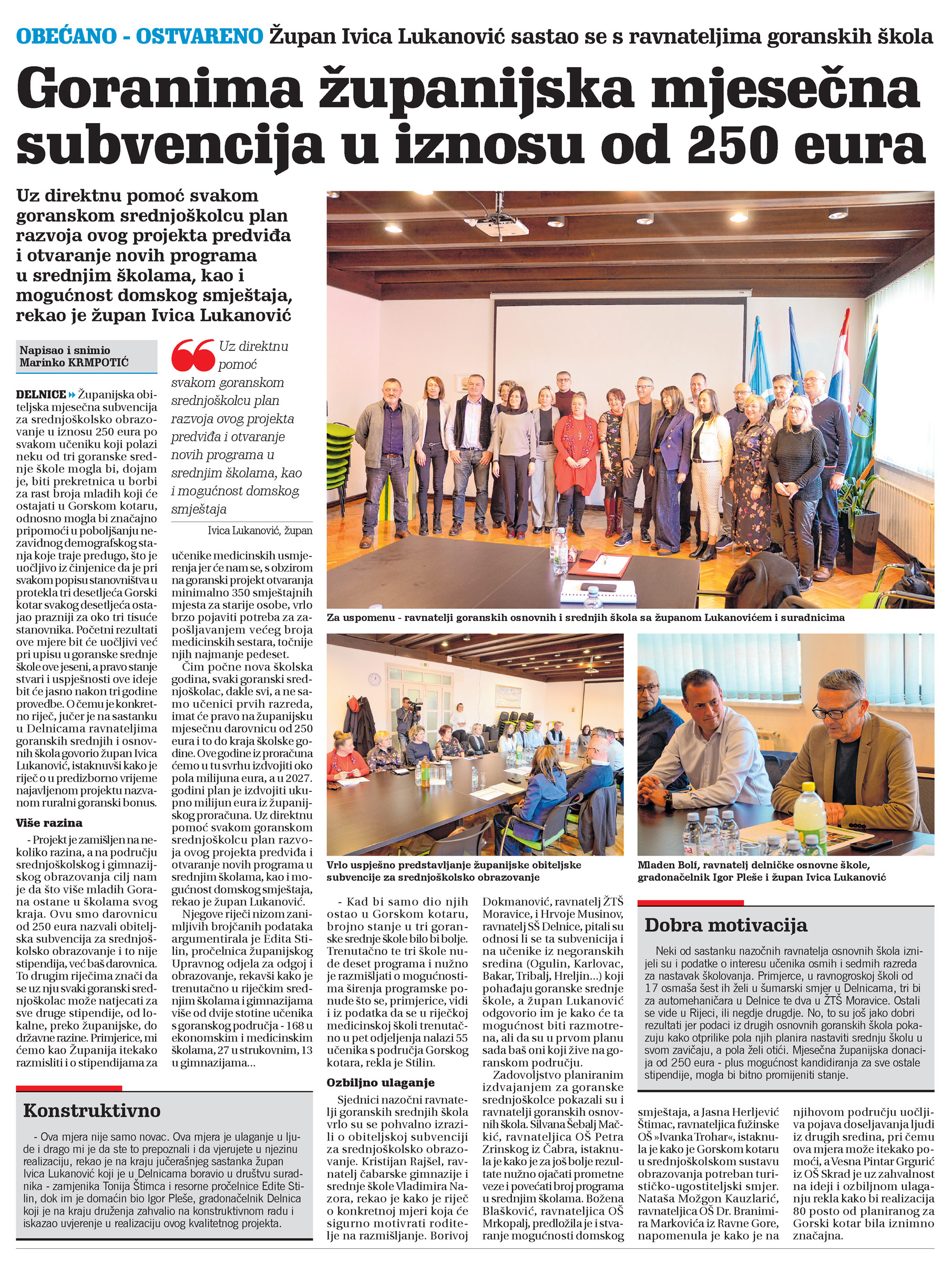Obećano-ostvareno: Goranima županijska mjesečna subvencija u iznosu od 250 eura, članak, novilist