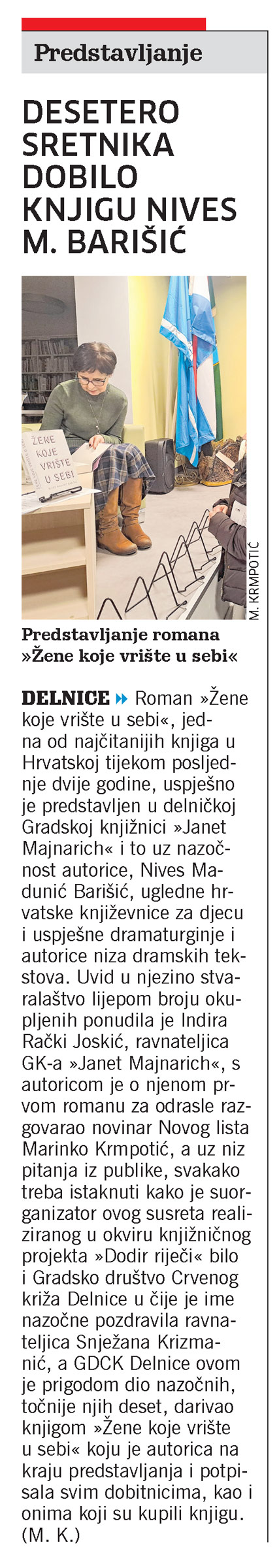 Predstavljanje romana "Žene koje vrište u sebi", članak, novi list