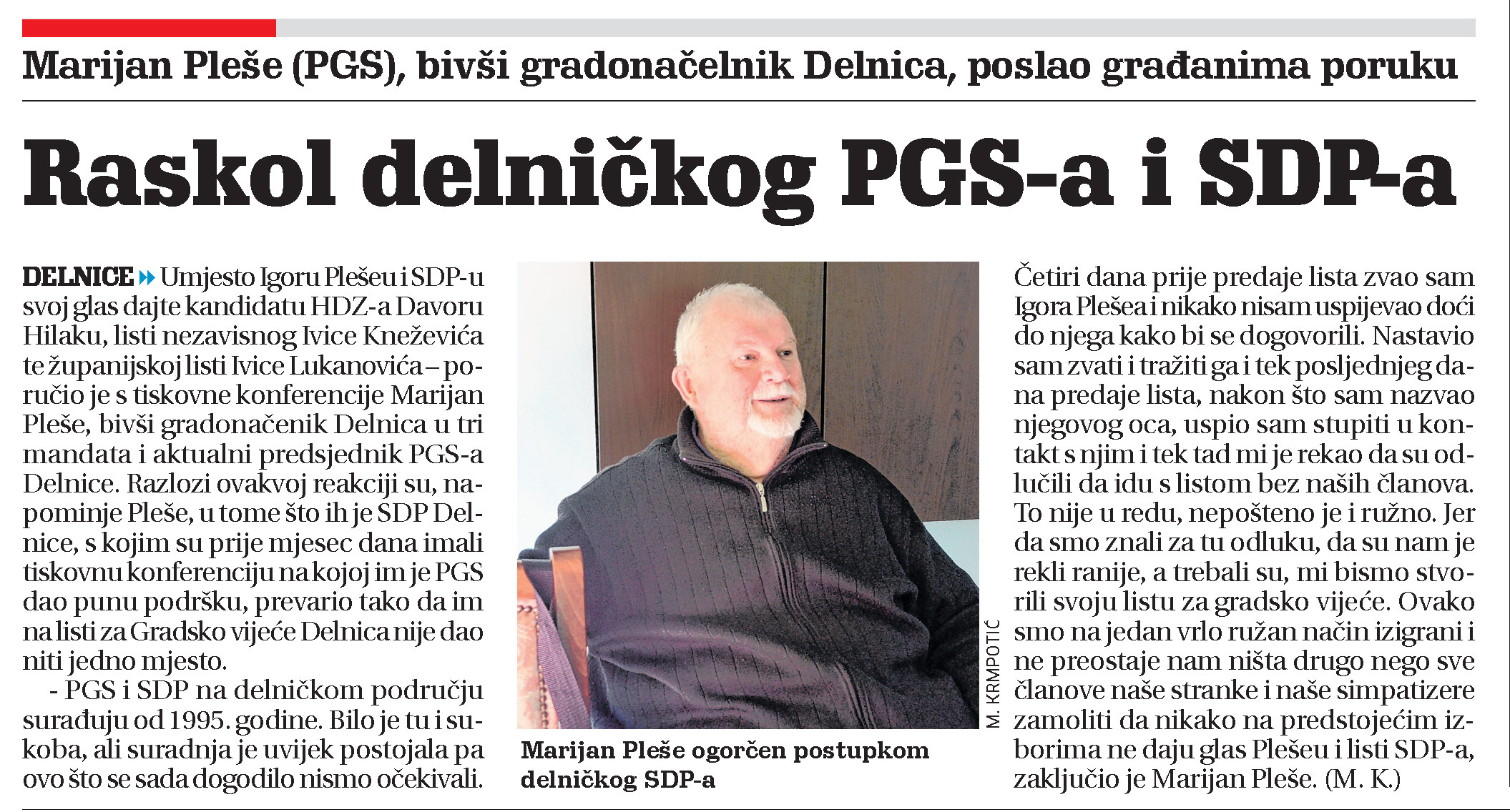 Raskol delničkog PGS-a i SDP-a, članak, novi list