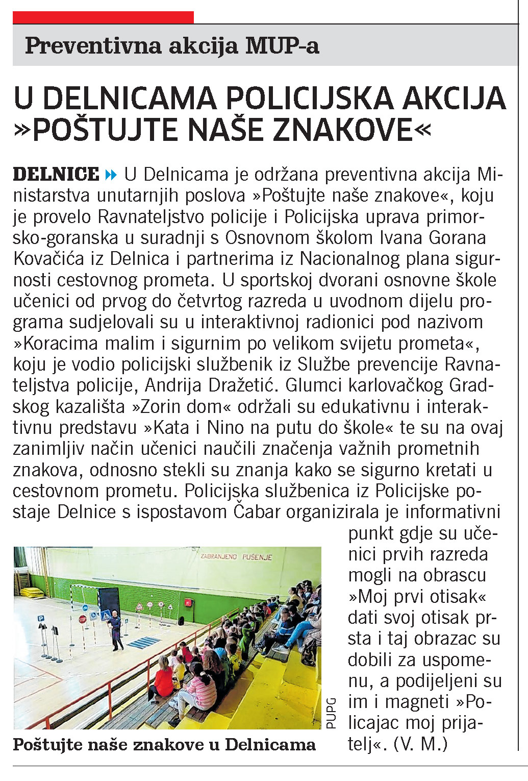U Delnicama policijska akcija "Poštujte naše znakove", članka, novi list