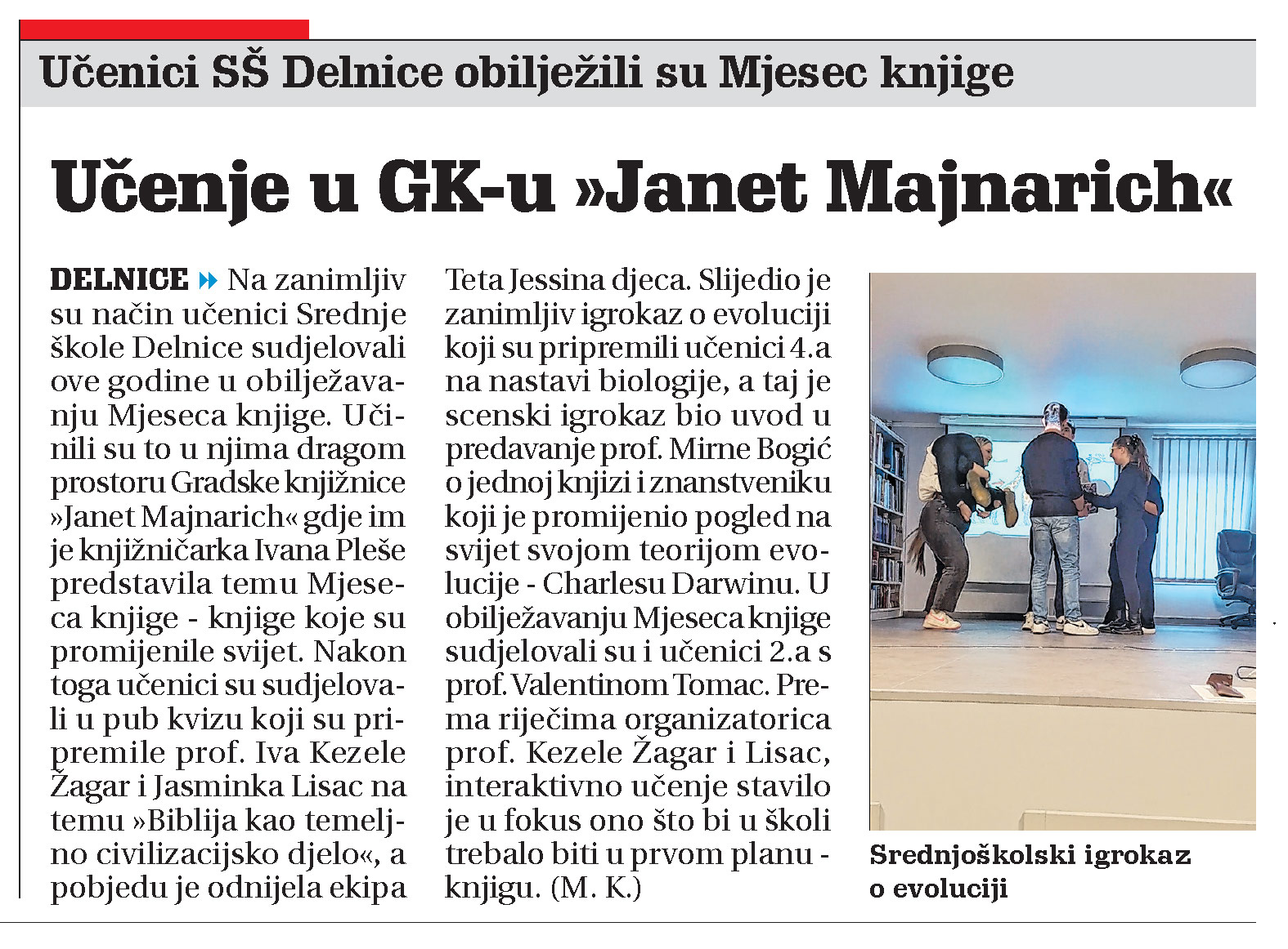Učenici SŠ Delnice obiljižili su Mjesec knjige, članak, novi list